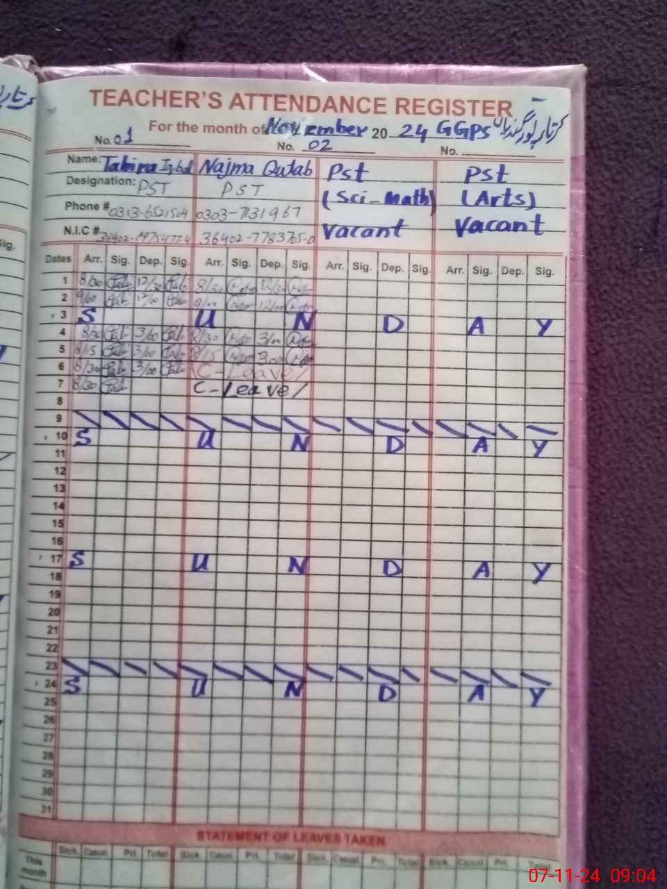 | Name: Ta**** Iq**** Designation: (School Headmaster's/Headmistress's) PST Phone/Cell Number: 03**** |