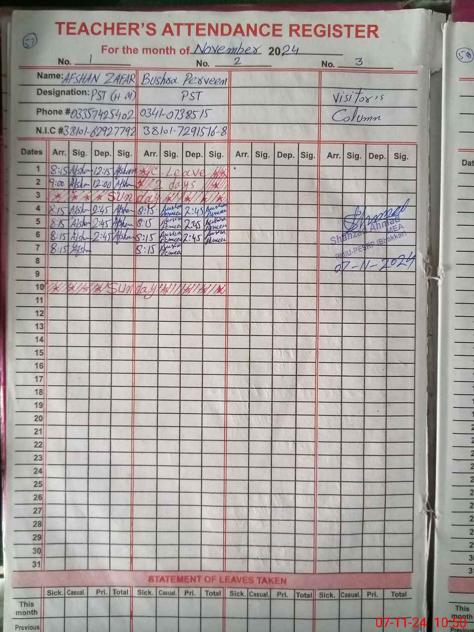 | Name: Af**** Za**** Designation: (School Headmaster's/Headmistress's) PST Phone/Cell Number: 03**** |