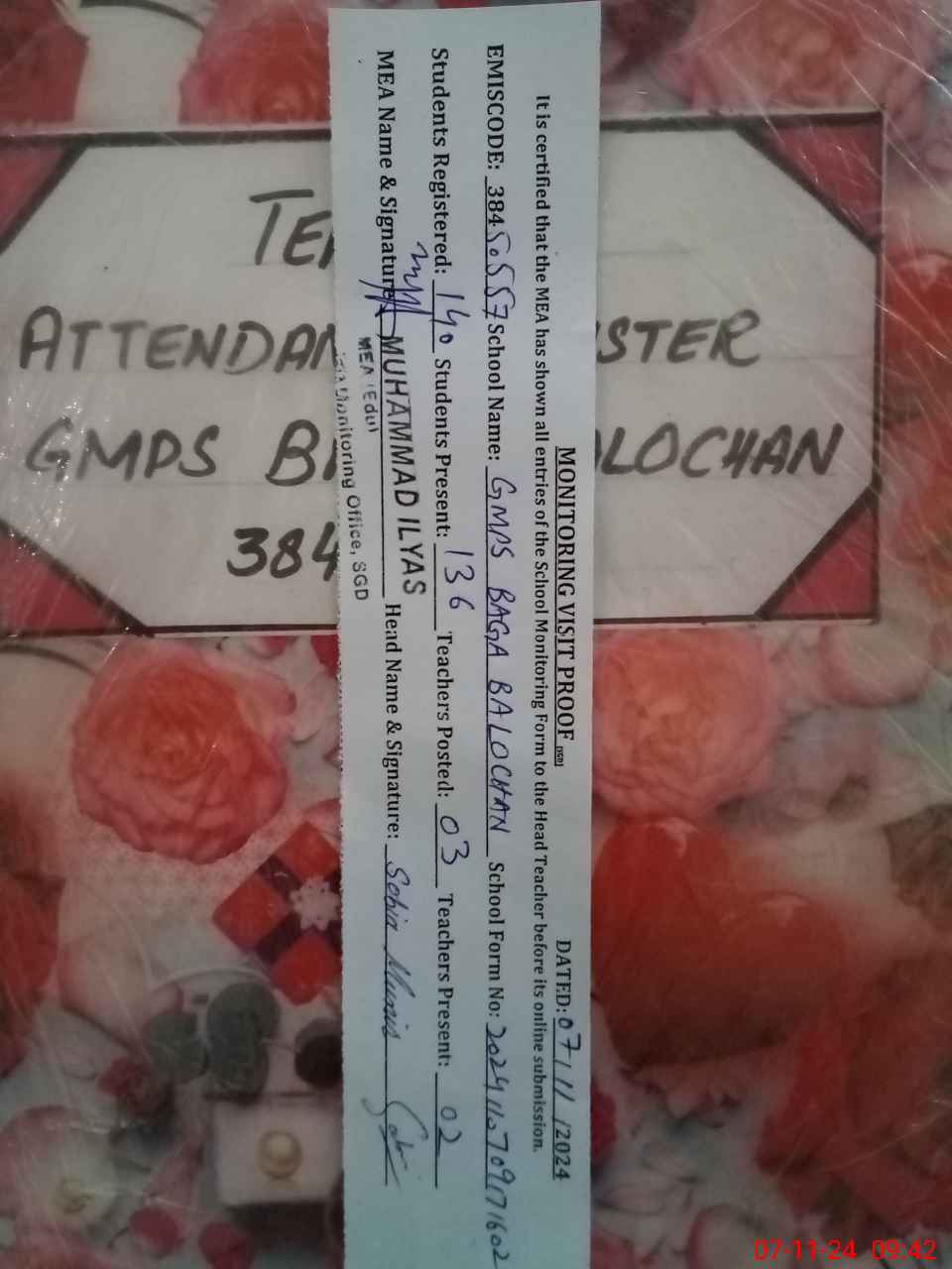 | EMIS Code: 38450557 | Name of School: GMPS BAGA BALOCHAN | |||