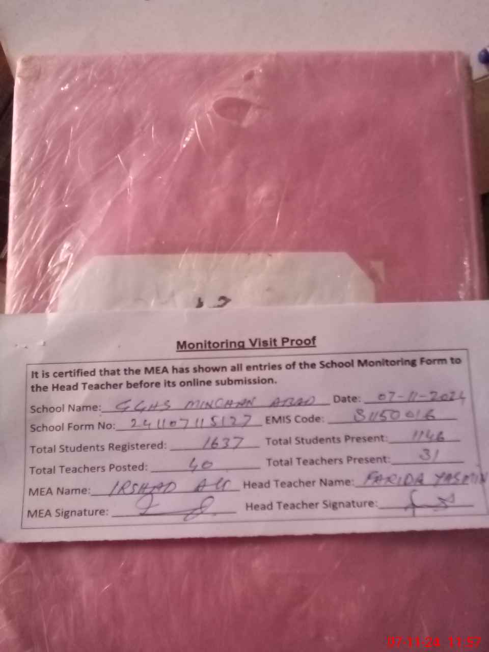 | EMIS Code: 31150016 | Name of School: GGHS MINCHIN ABAD | |||