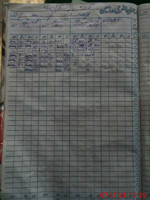 | CNIC | Full Name | Designation | R/C | Absence During Last Calender Month |