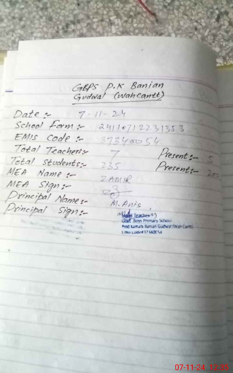 | EMIS Code: 37340054 | Name of School: GPS PIND KAMALA BANIAN | |||