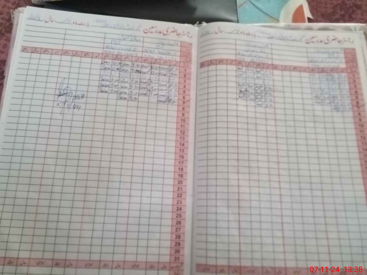 | CNIC | Full Name | Designation | R/C | Absence During Last Calender Month |