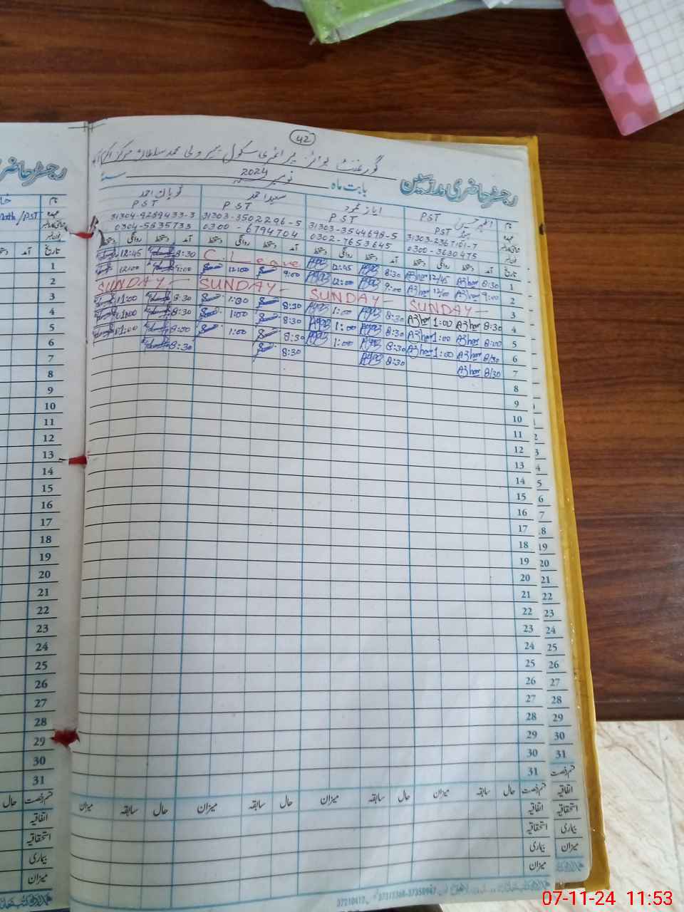 | CNIC | Full Name | Designation | R/C | Absence During Last Calender Month |