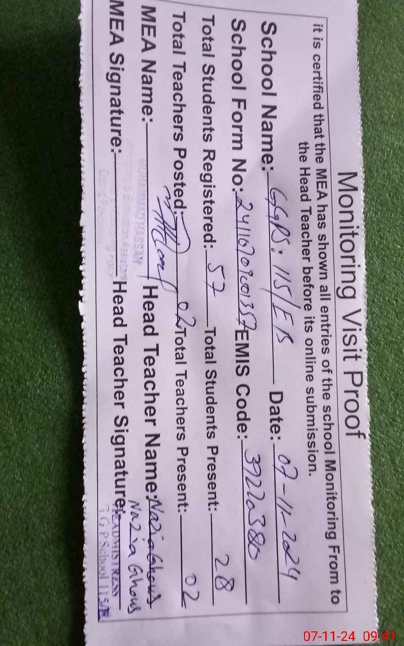 | EMIS Code: 39220380 | Name of School: GGPS 115 EB P/O THANA AHMAD YAR | |||