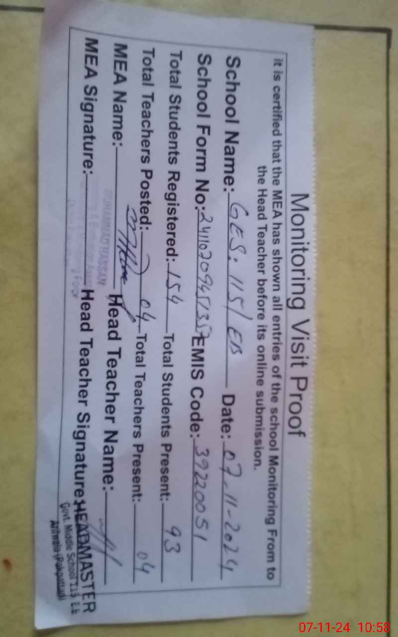 | EMIS Code: 39220051 | Name of School: GES 115 EB ARIF WALA | |||