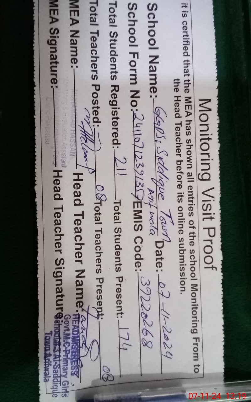 | EMIS Code: 39220268 | Name of School: GGPS MC NO. 3 AL-SADDIQUE TOWN | |||
