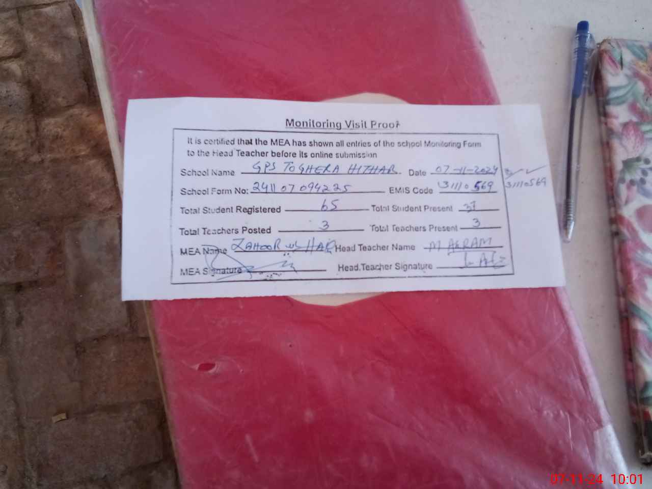 | EMIS Code: 31110569 | Name of School: GPS TOGHRA SHARIF | |||