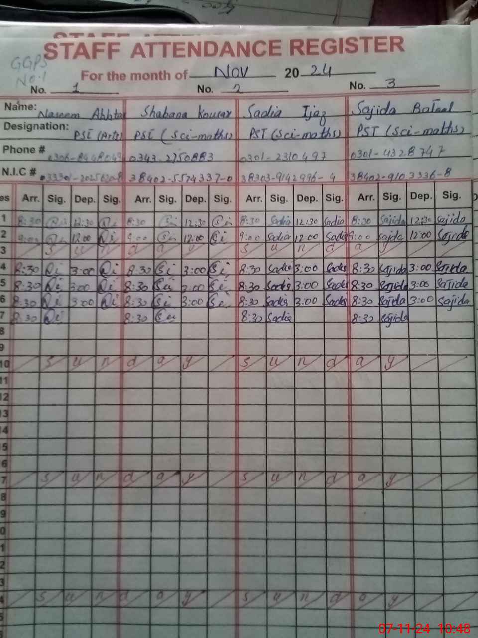 | CNIC | Full Name | Designation | R/C | Absence During Last Calender Month |