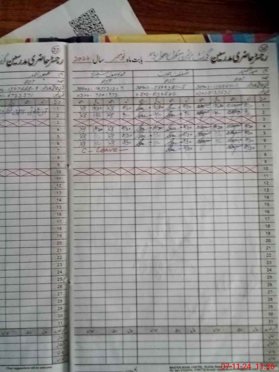 | CNIC | Full Name | Designation | R/C | Absence During Last Calender Month |
