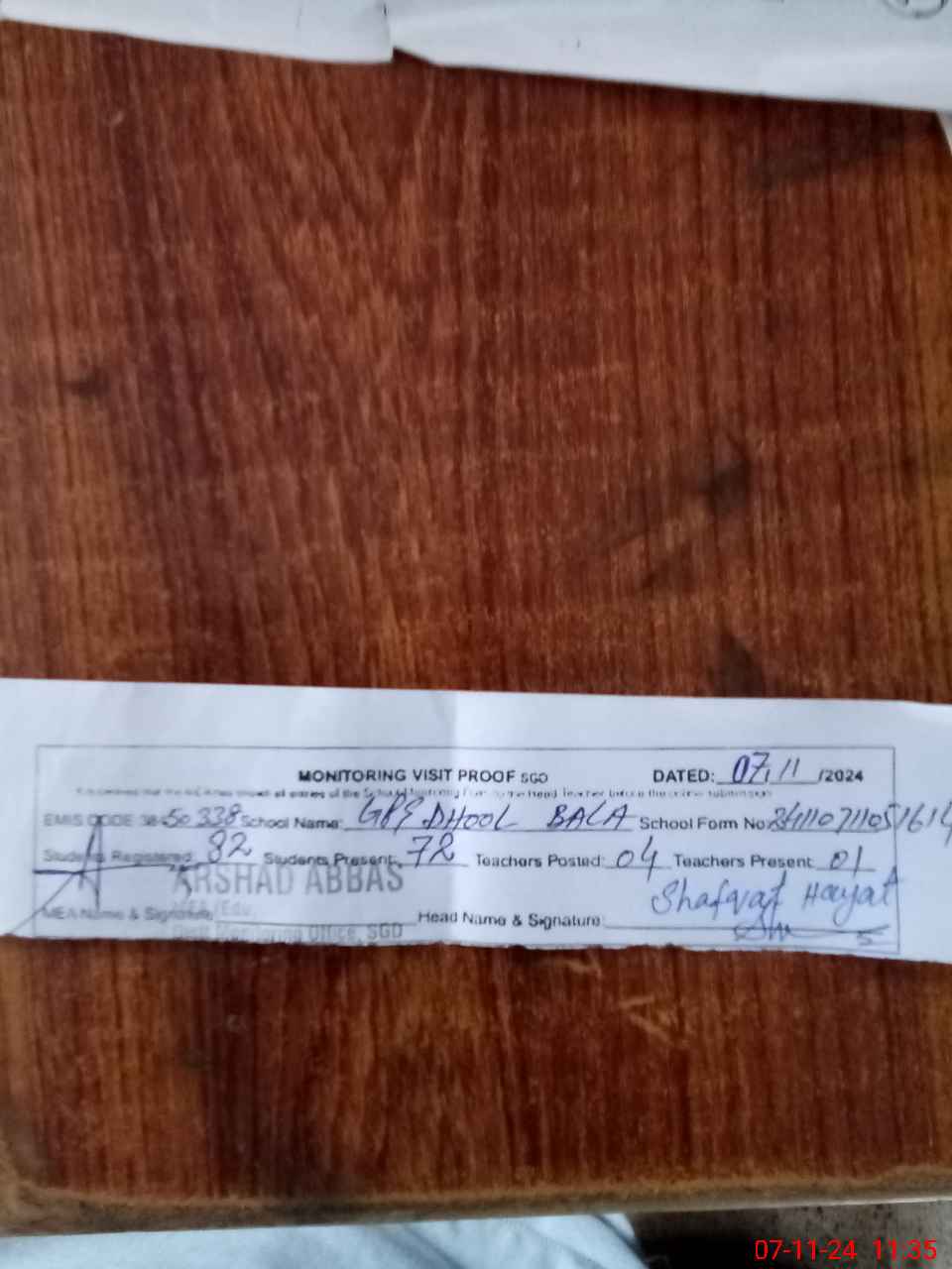 | Attendance Register | Head Teacher | MEA with School | Visit Proof |