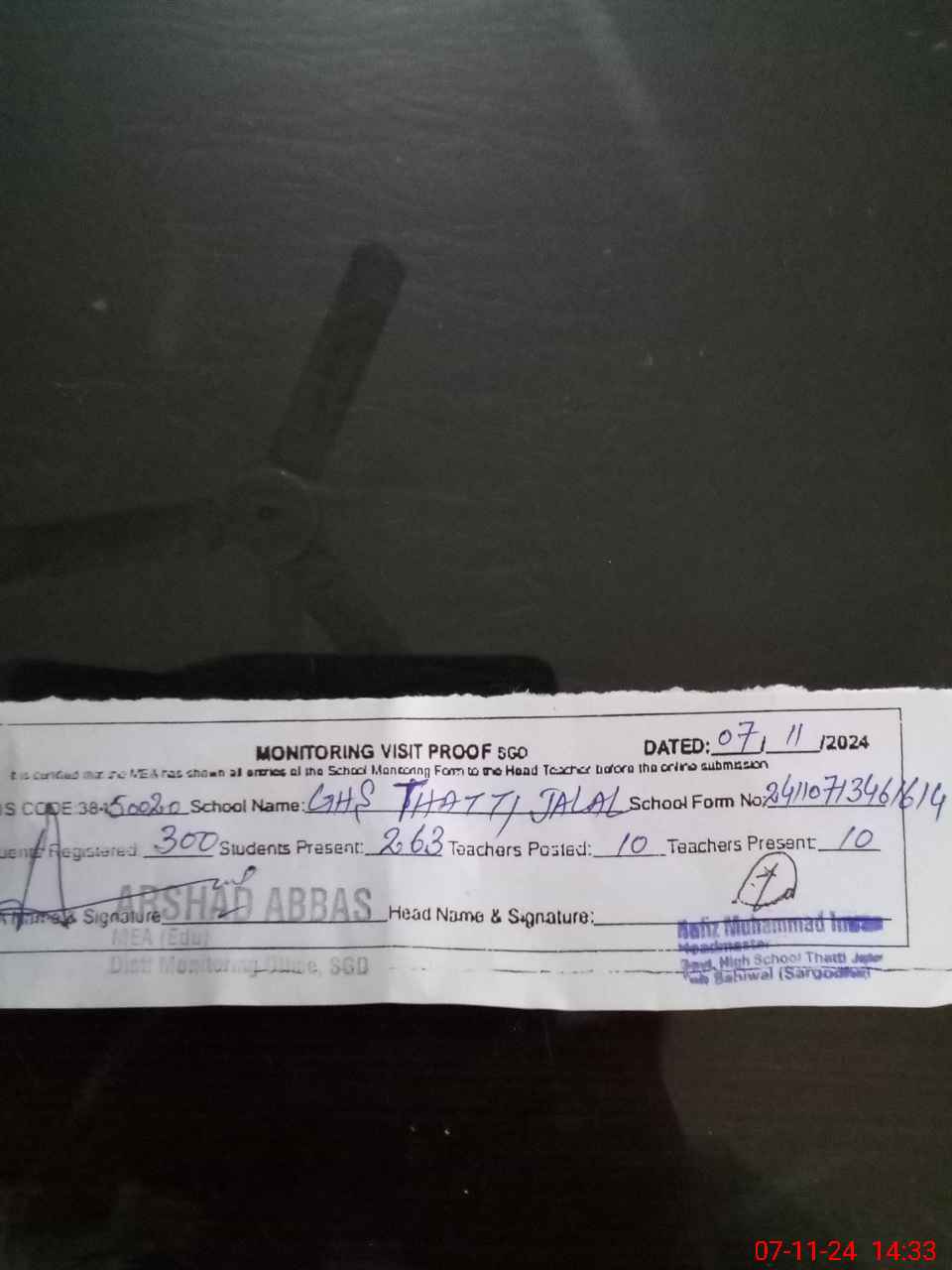 | Name: HA**** MU**** IM**** Designation: (School Headmaster's/Headmistress's) SST SCIENCE Phone/Cell Number: 03**** |