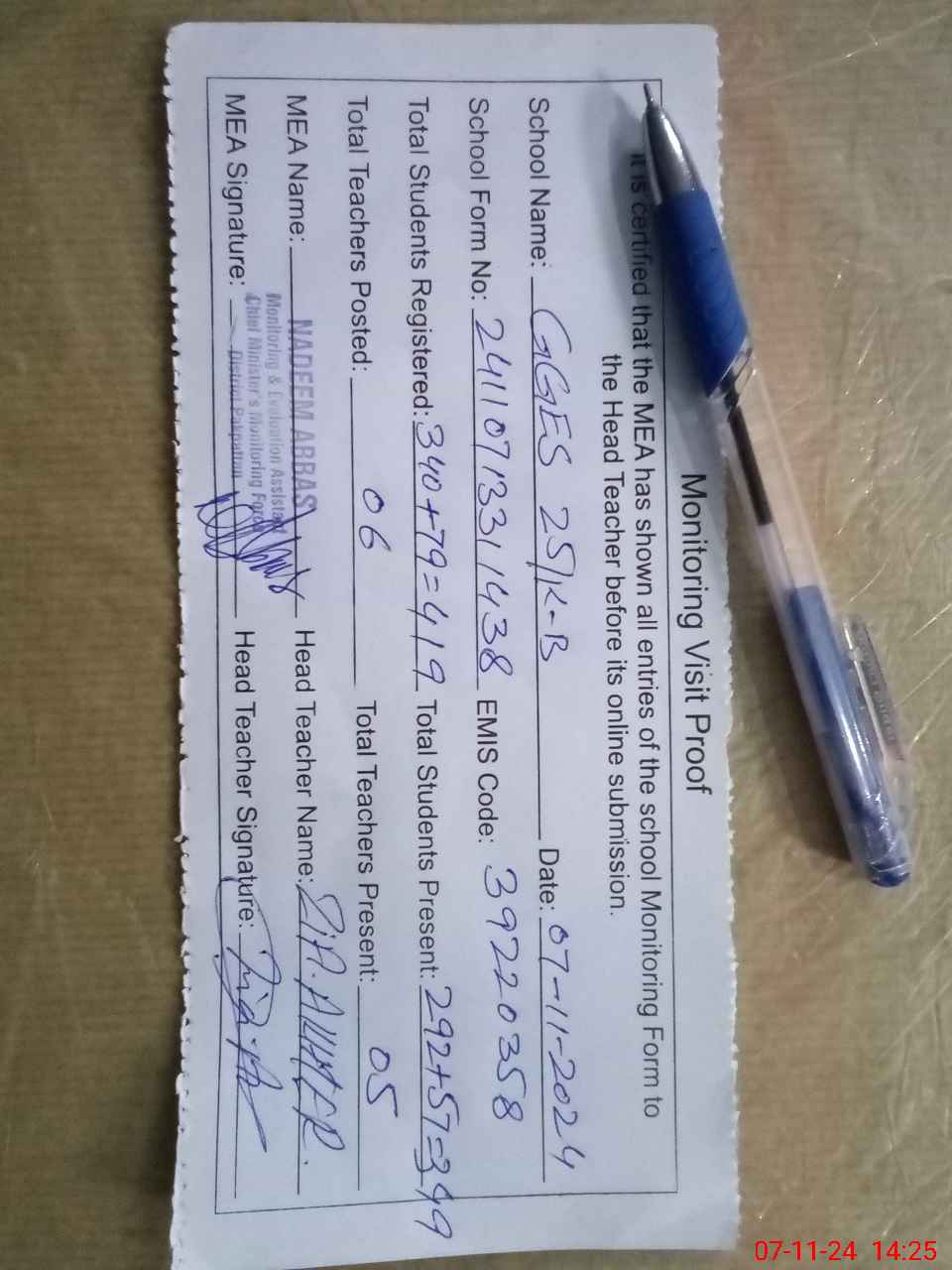 | EMIS Code: 39220358 | Name of School: GGHS 25 KB | |||