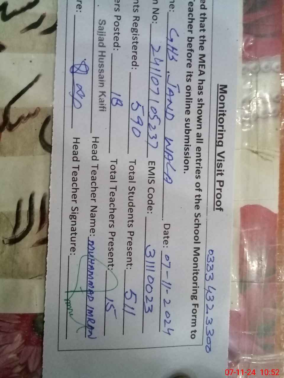 | EMIS Code: 31110023 | Name of School: GHS JAND WALA | |||