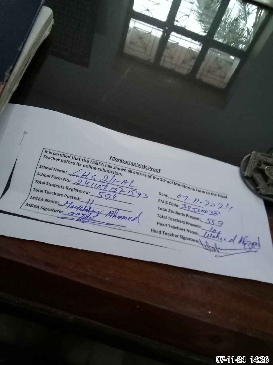 | EMIS Code: 39330038 | Name of School: GHS CHAK NO. 2/1-AL | |||