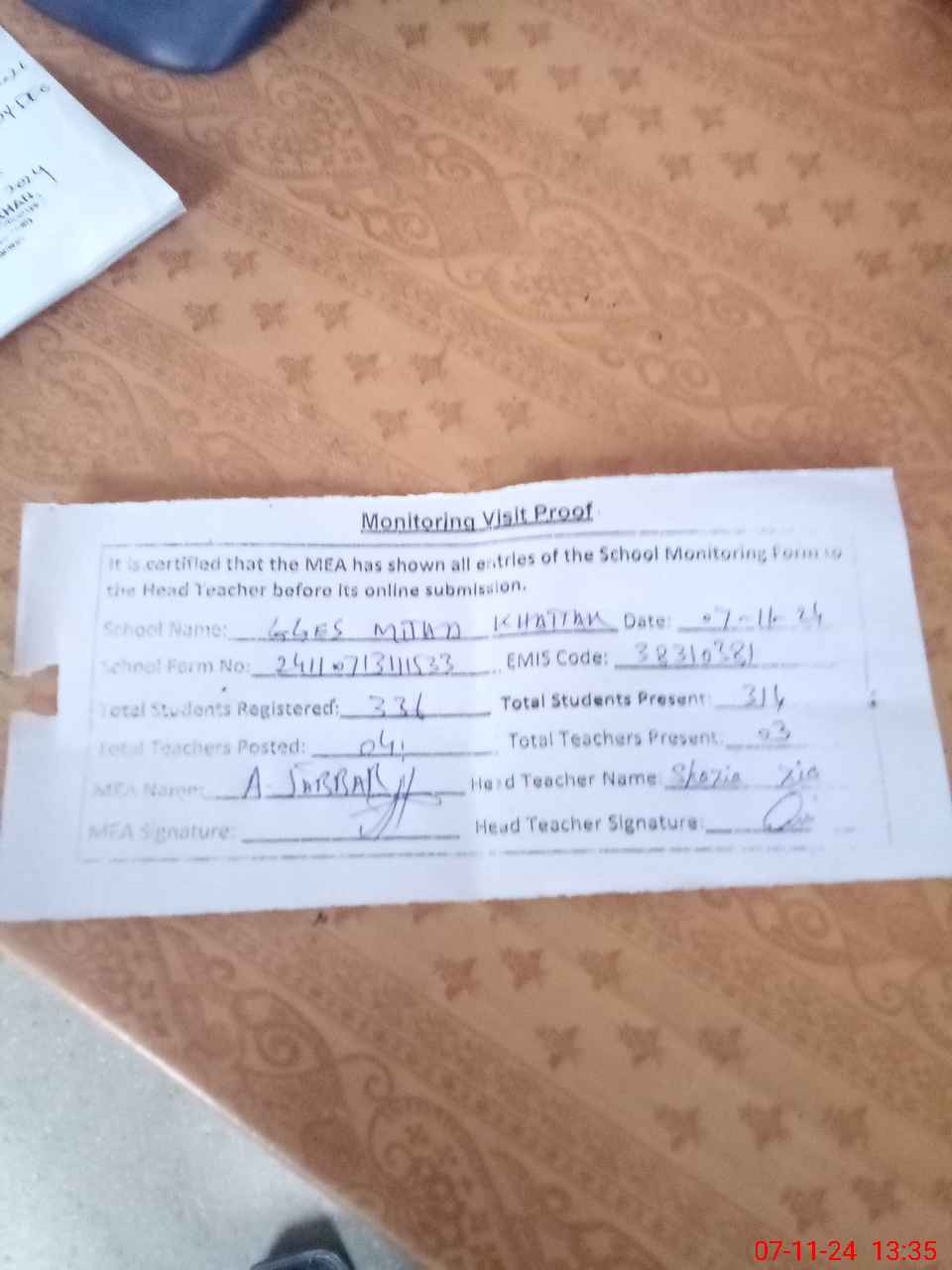 | EMIS Code: 38310381 | Name of School: GGES MITHA KHATTAK | |||