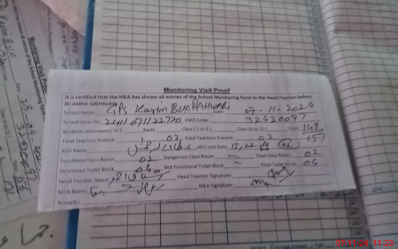 | EMIS Code: 32430097 | Name of School: GPS KARIM BUX RAHWARI | |||
