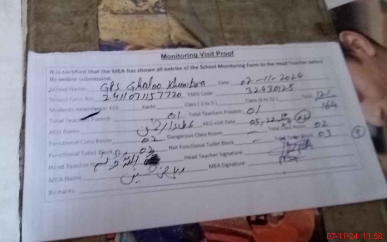 | EMIS Code: 32430125 | Name of School: GPS GHALLO KHUMBRA | |||
