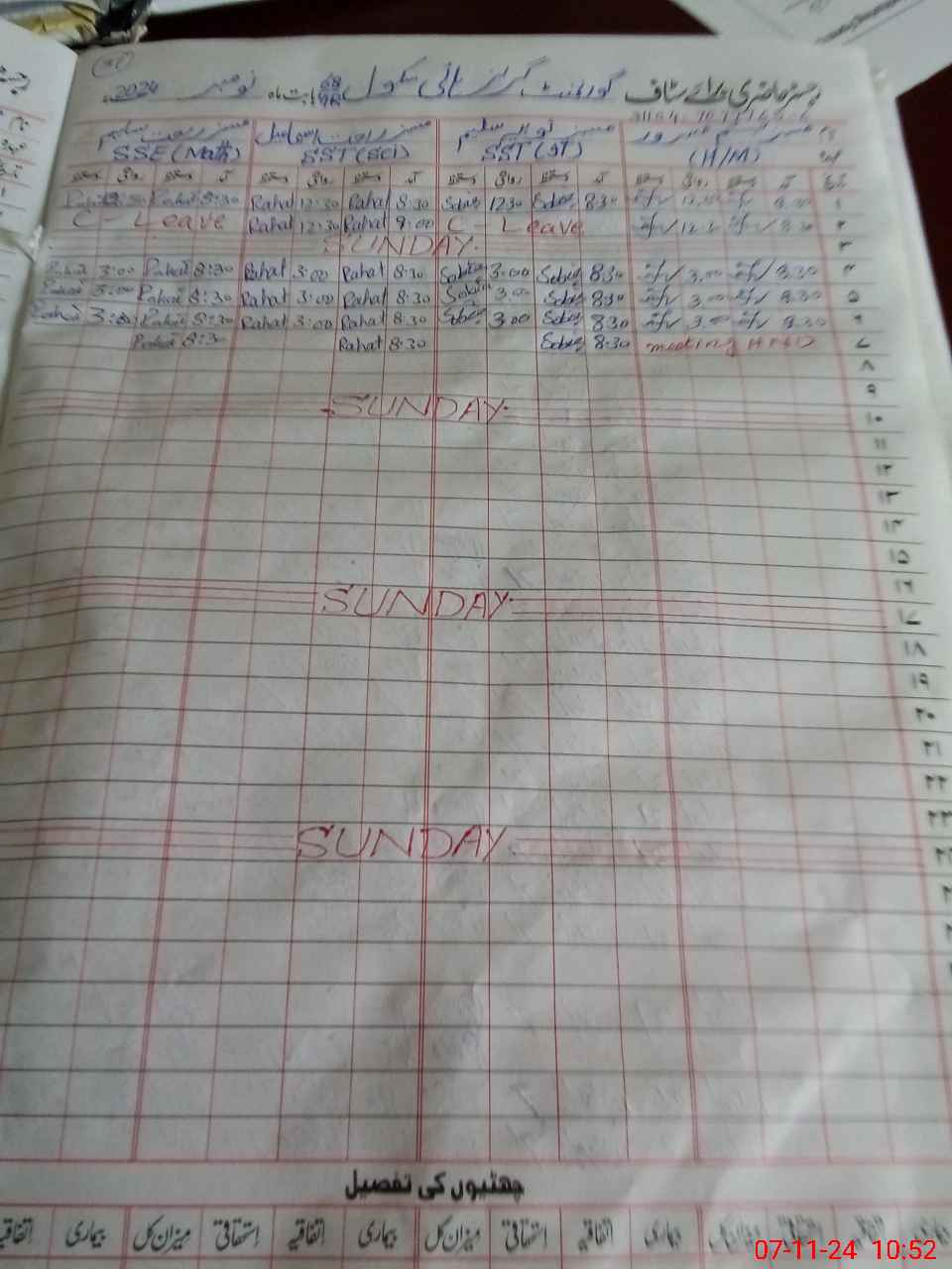 | CNIC | Full Name | Designation | R/C | Absence During Last Calender Month |