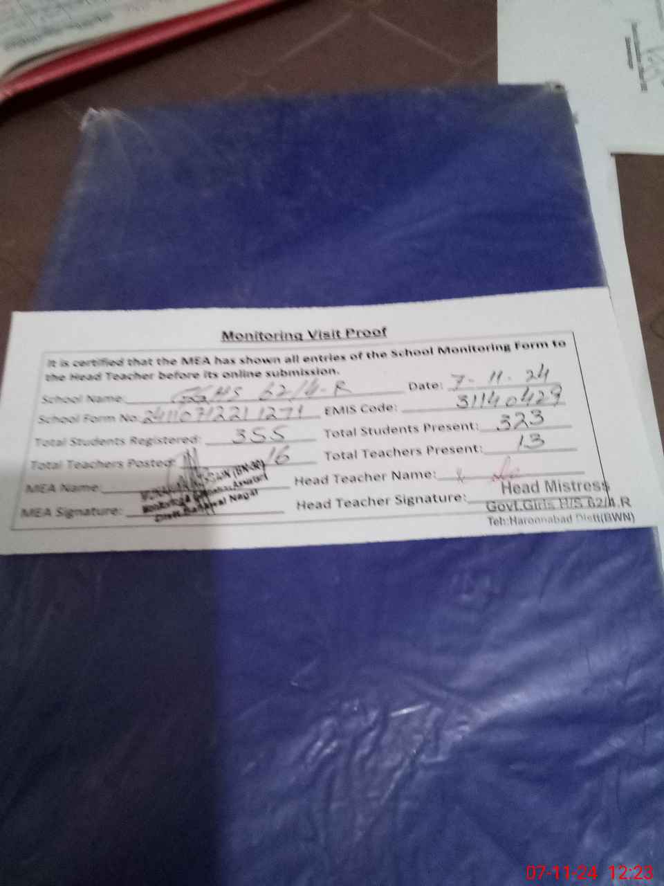| EMIS Code: 31140029 | Name of School: GGHS CHAK NO.62/4-R | |||