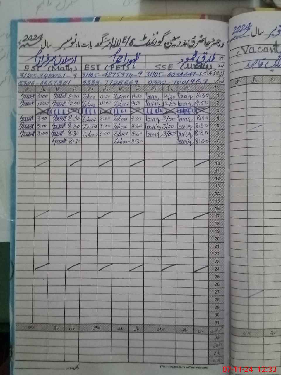 | Name: TA**** ME**** Designation: (School Headmaster's/Headmistress's) SSE (URDU) Phone/Cell Number: 03**** |