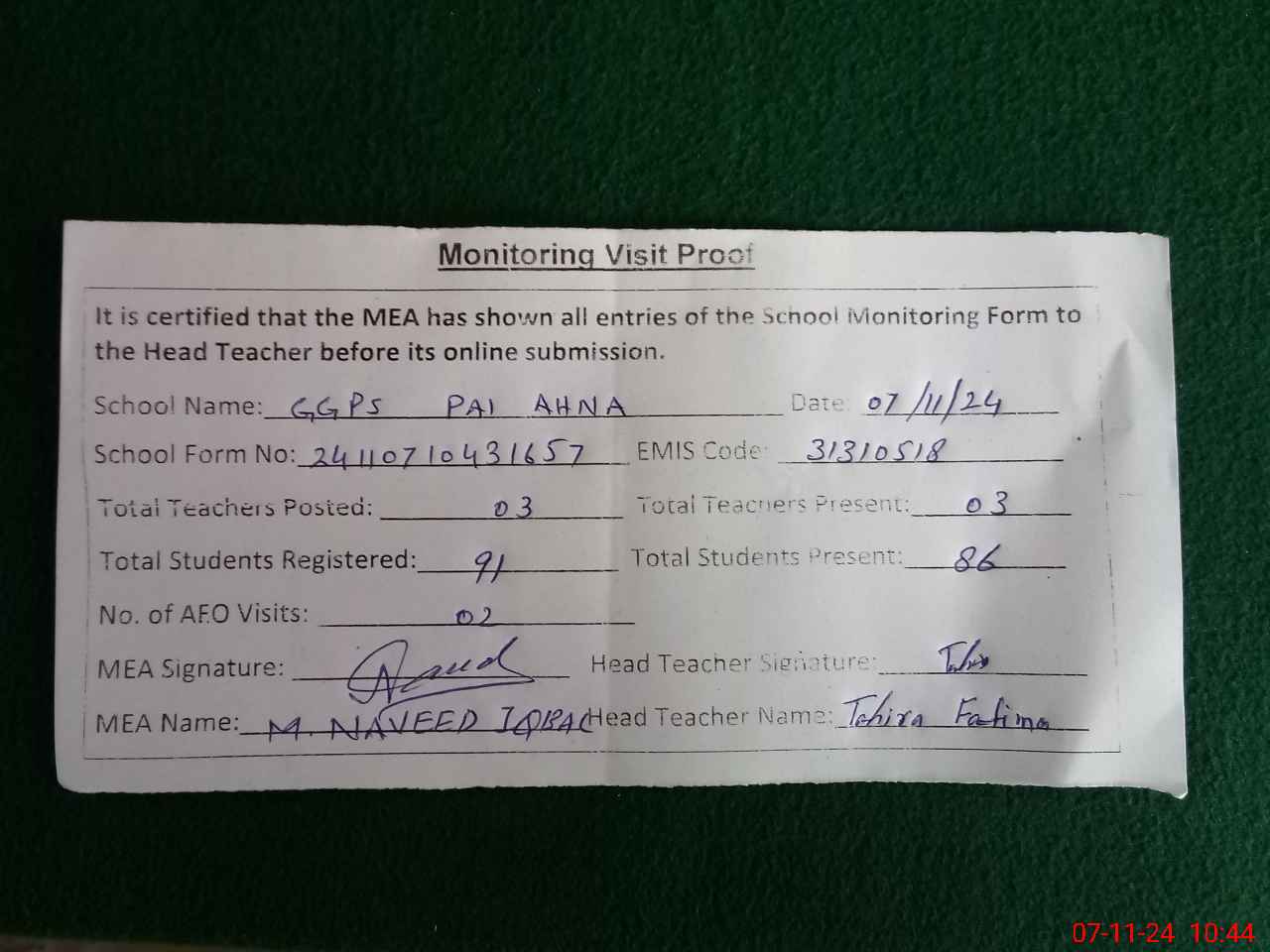 | EMIS Code: 31310518 | Name of School: GGPS PAIAHNA | |||
