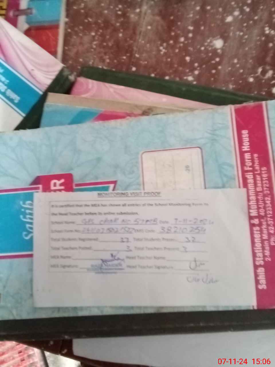 | Attendance Register | Head Teacher | MEA with School | Visit Proof |