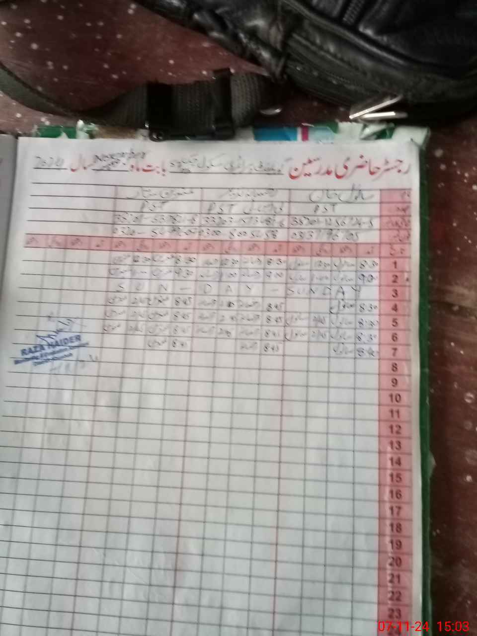 | CNIC | Full Name | Designation | R/C | Absence During Last Calender Month |