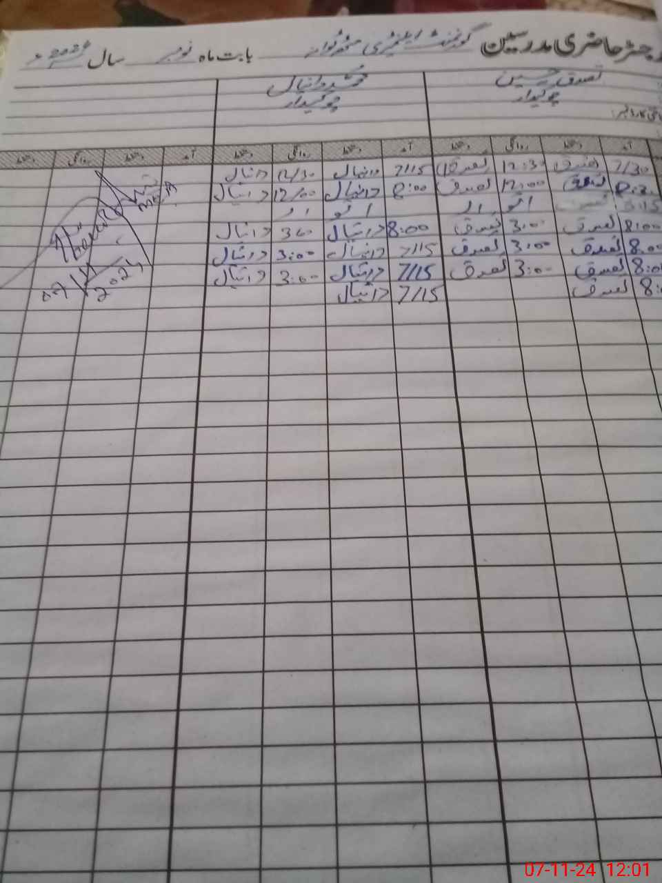 | CNIC | Full Name | Designation | R/C | Absence During Last Calender Month |
