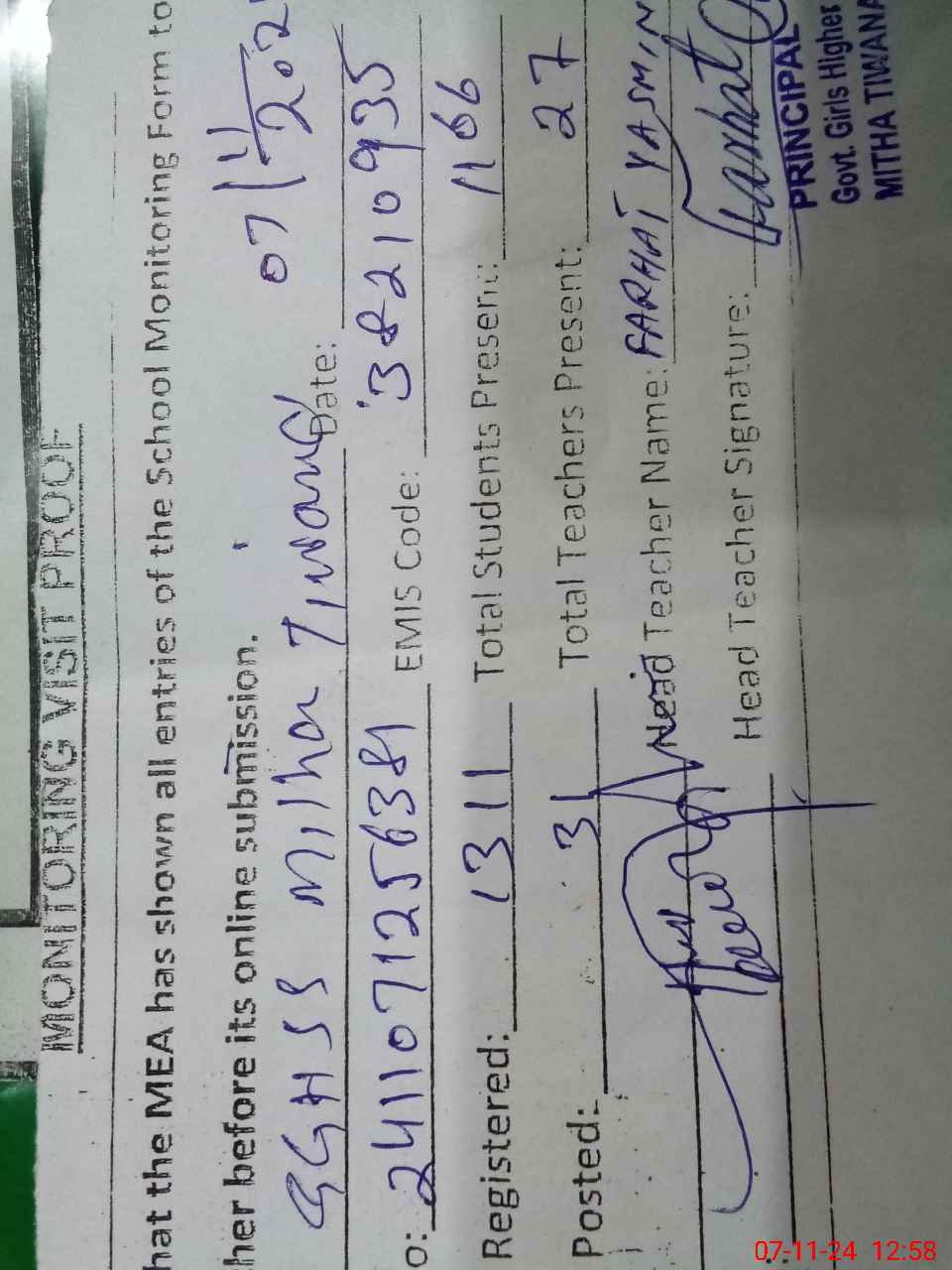| EMIS Code: 38210935 | Name of School: GGHSS MITHA TIWANA | |||
