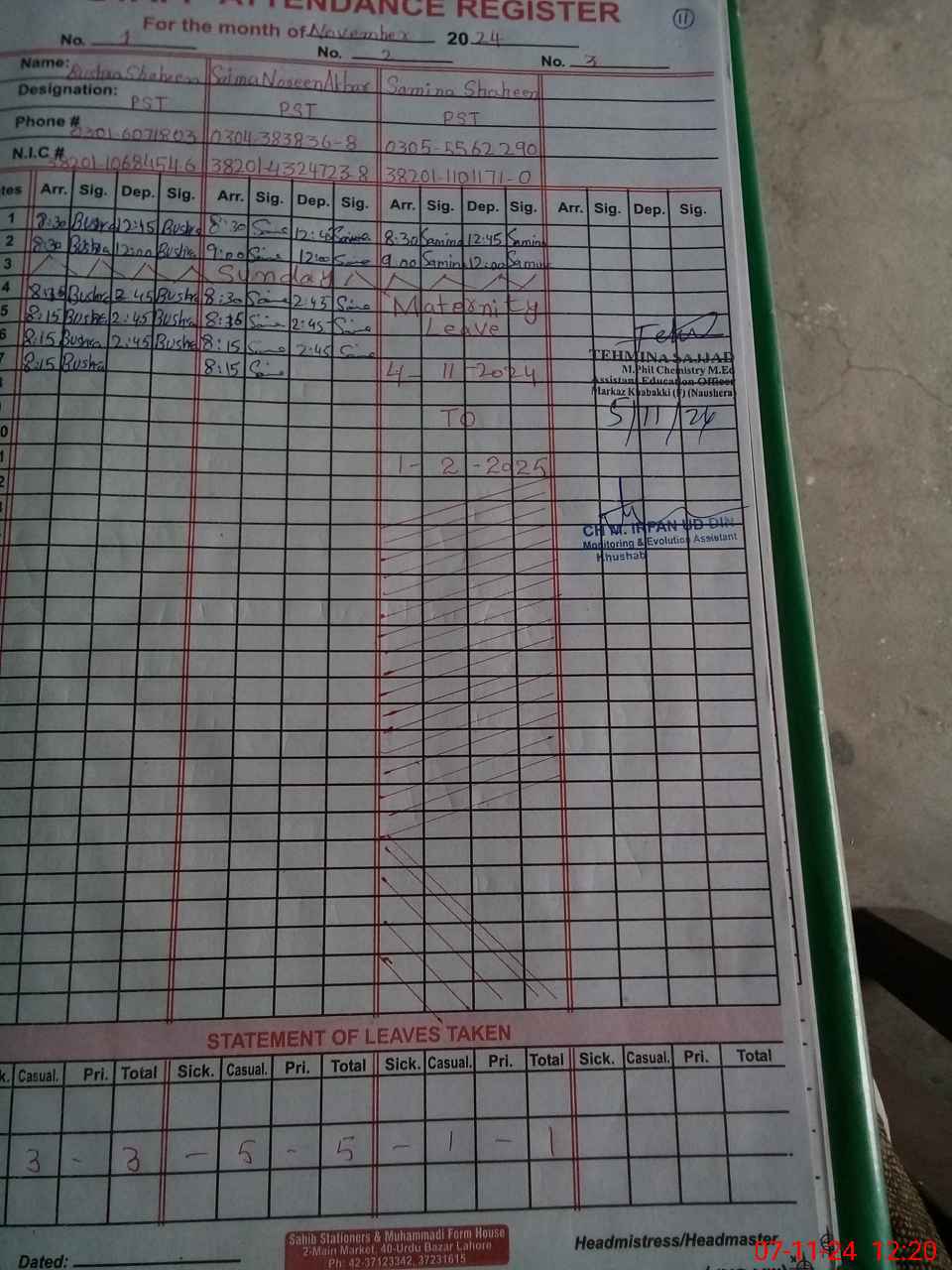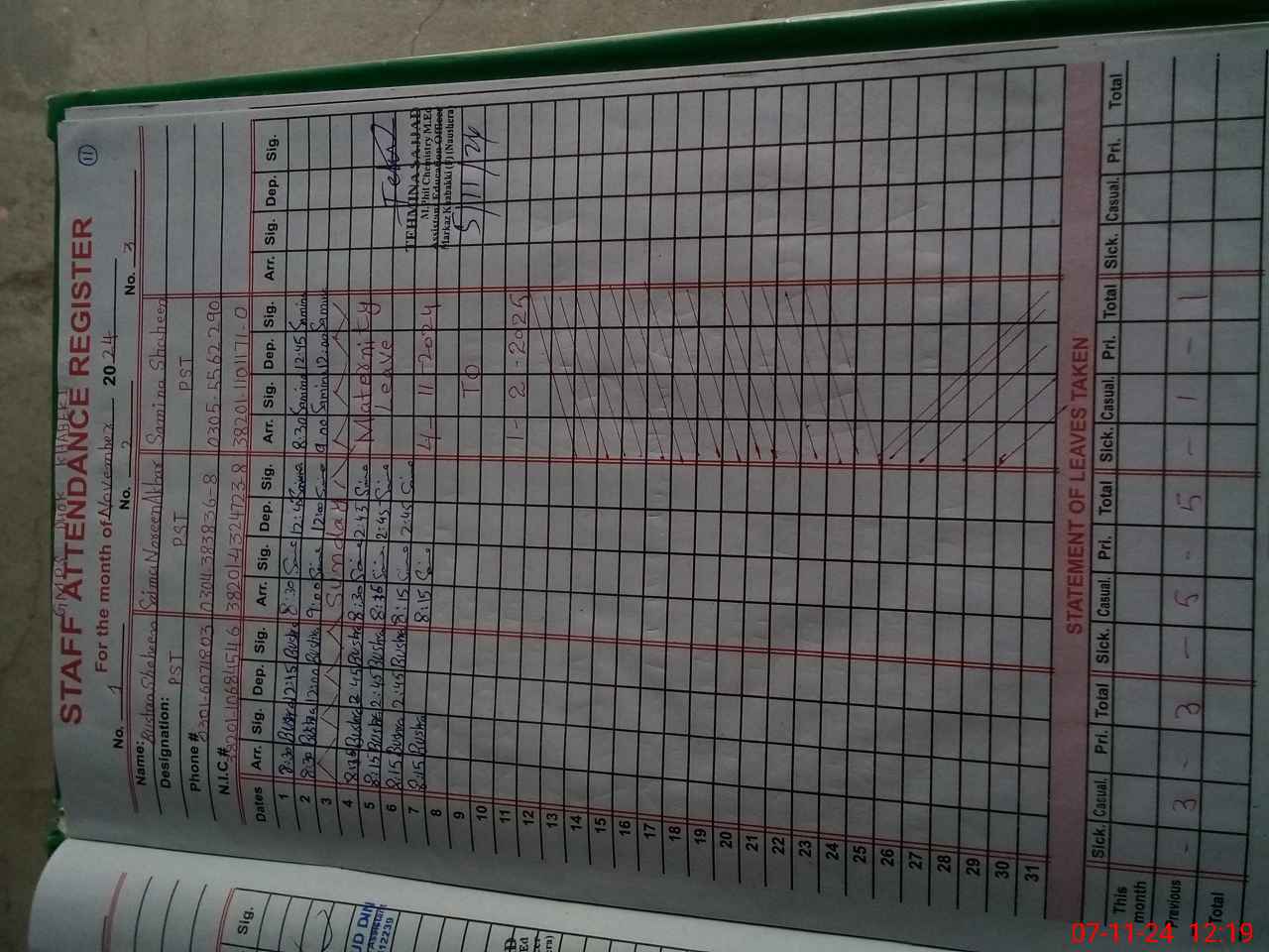 | 38**** | Sa**** Sh**** | PST | Regular | 0 | 0 | 0 | 0 | 0 | 0 | 0 | 0 | 0 | Maternity |