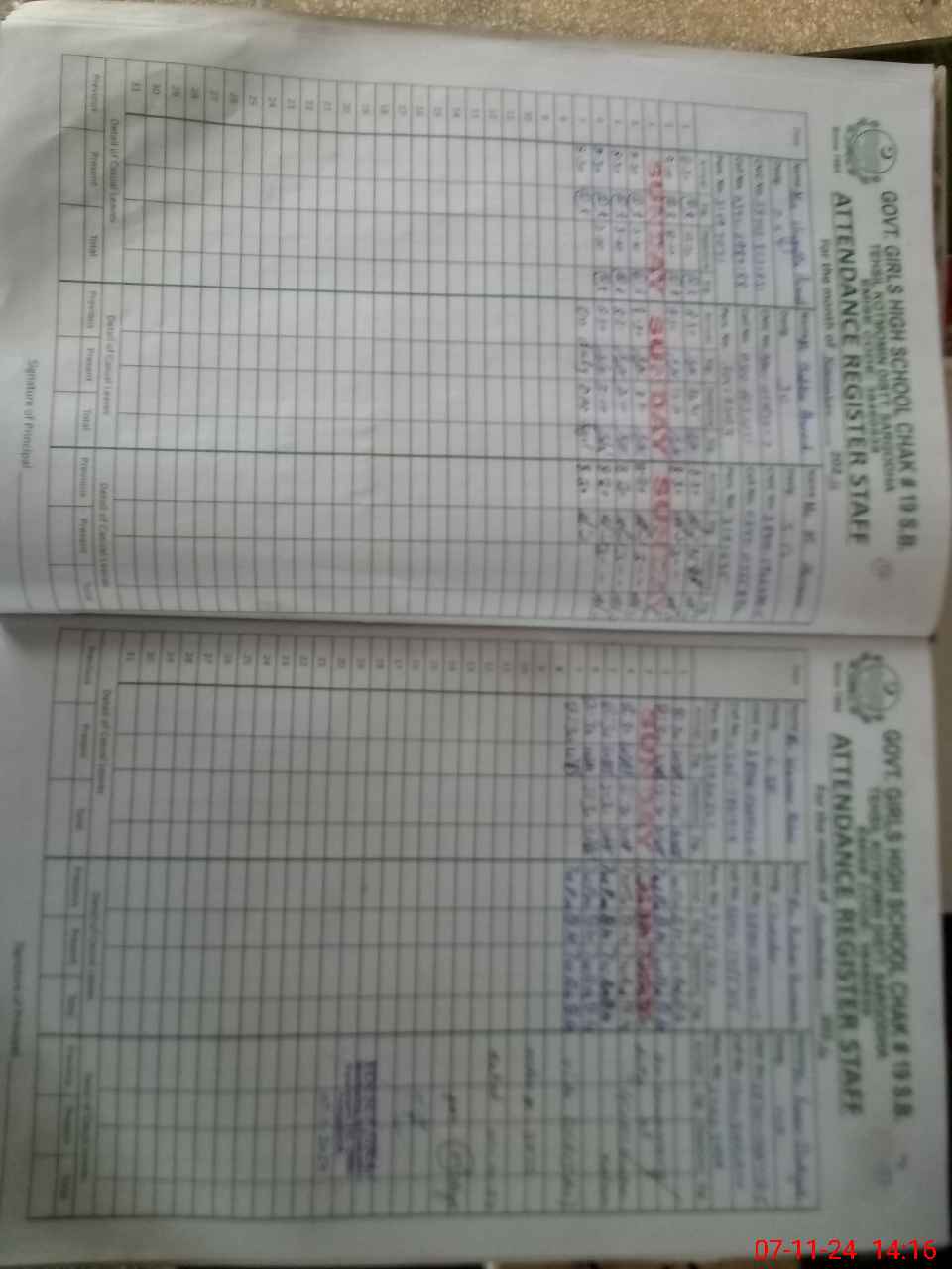| CNIC | Full Name | Designation | R/C | Absence During Last Calender Month |