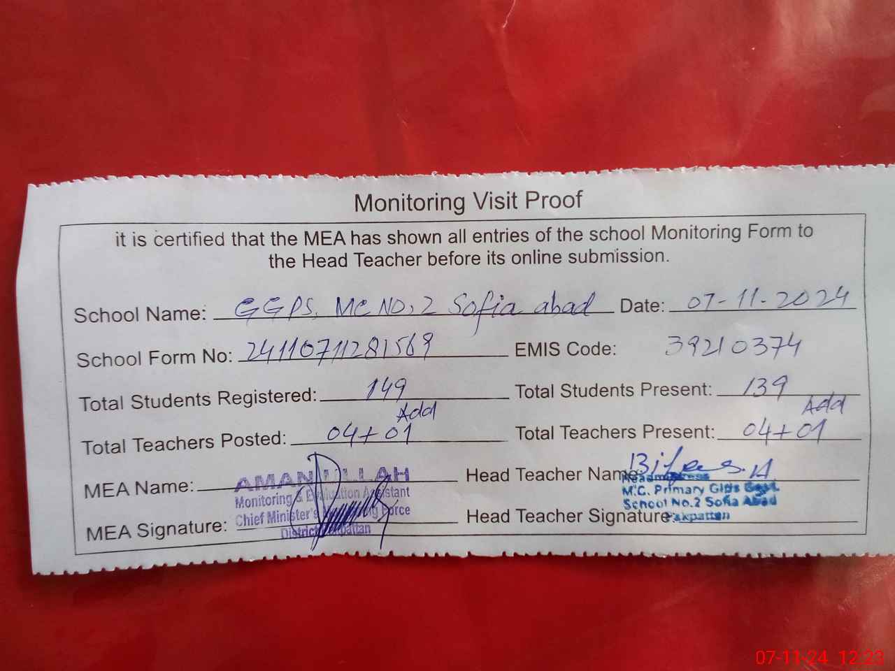| EMIS Code: 39210374 | Name of School: GGPS MC NO. 2 SOFIA ABAD | |||