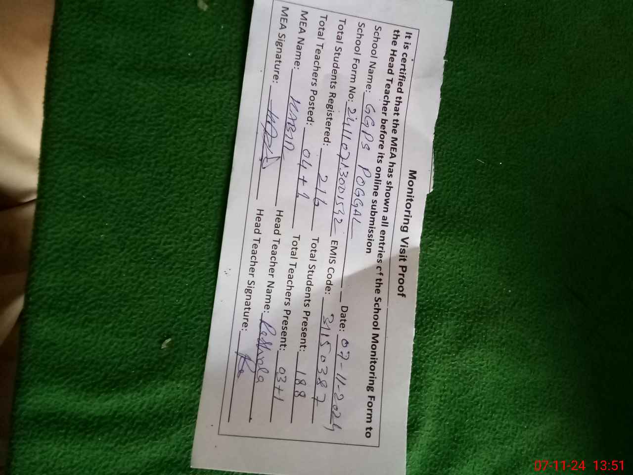 | Monitoring Date: 07-11-2024 | Start Time: 07-11-2024 01:00 PM | End Time: 07-11-2024 01:51 PM | Name of MEA: Ka**** Ah**** Sh**** BN**** | |