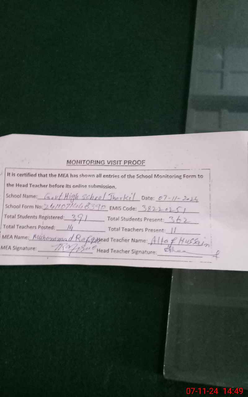 | EMIS Code: 38220251 | Name of School: GHS JHARKIL | |||