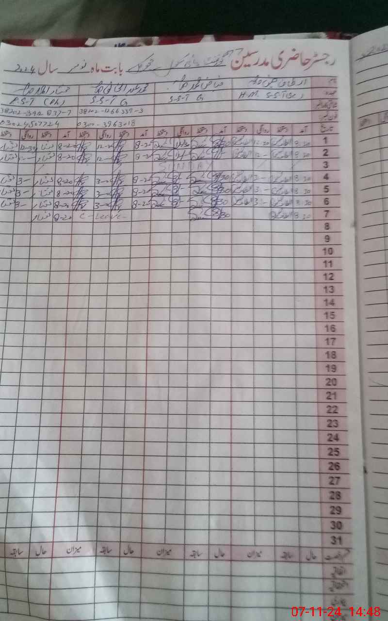 | Name: AL**** HU**** Designation: (School Headmaster's/Headmistress's) SST Science Phone/Cell Number: 03**** |