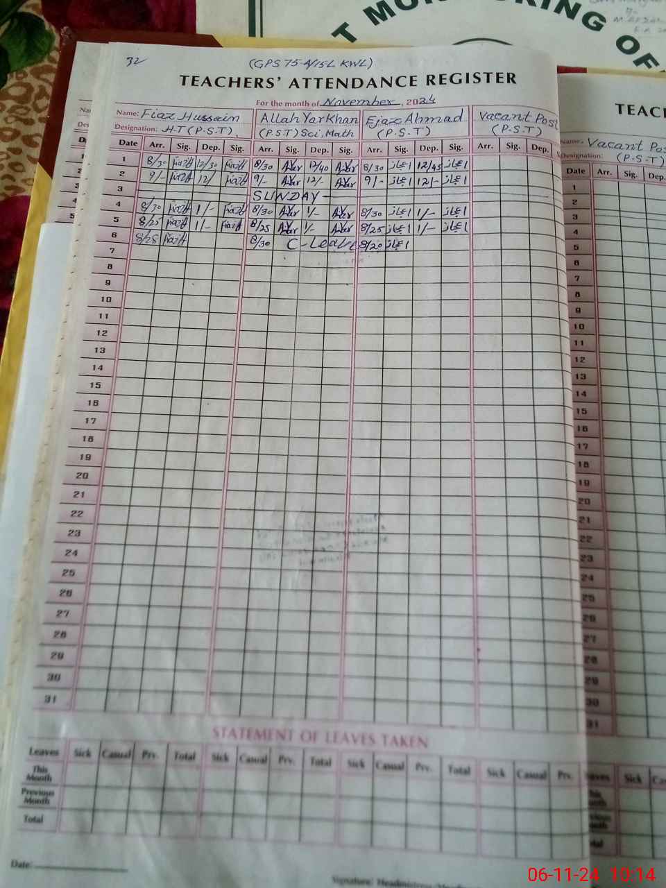 | Name: FI**** HU**** Designation: (School Headmaster's/Headmistress's) PST Phone/Cell Number: 03**** |
