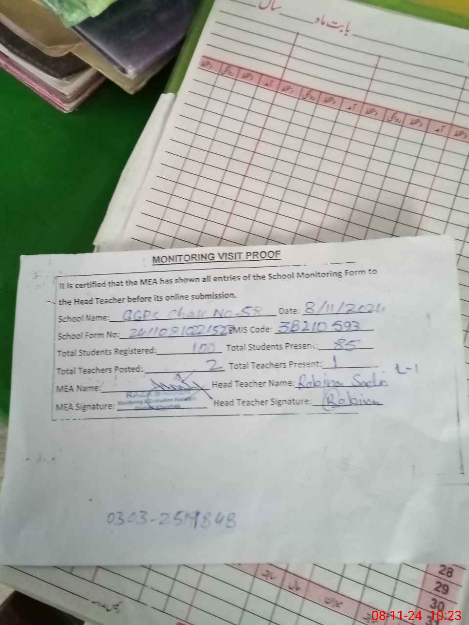 | EMIS Code: 38210593 | Name of School: GGPS CHAK NO. 58 MB | |||