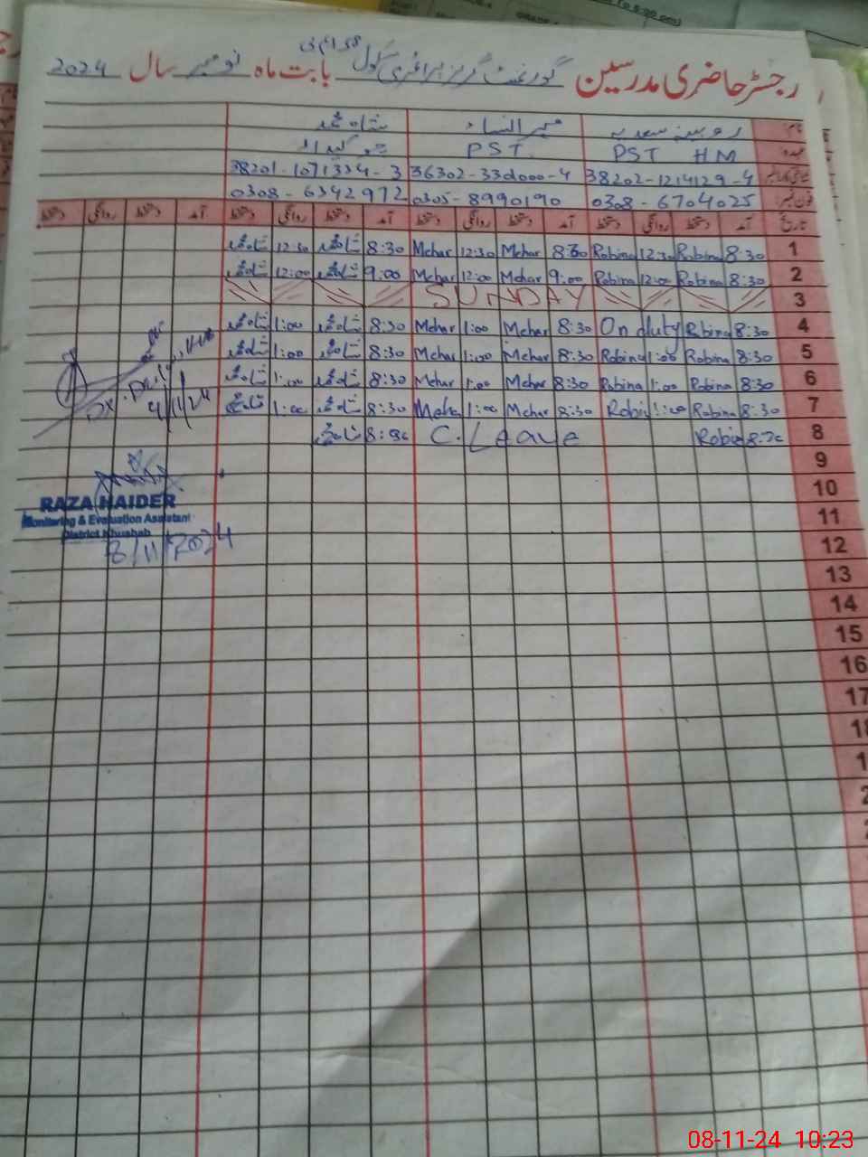 | Name: Ro**** Sa**** Designation: (School Headmaster's/Headmistress's) PST Phone/Cell Number: 03**** |