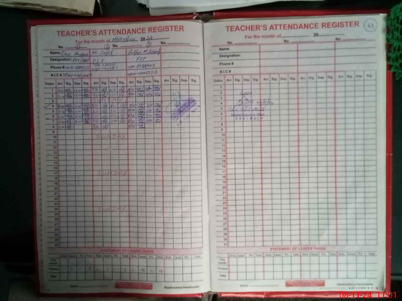 | Name: IJ**** HU**** Designation: (School Headmaster's/Headmistress's) PST Phone/Cell Number: 03**** |