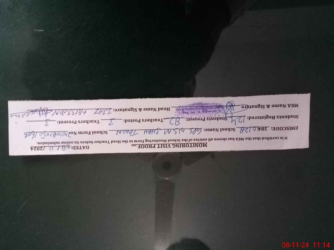 | Attendance Register | Head Teacher | MEA with School | Visit Proof |