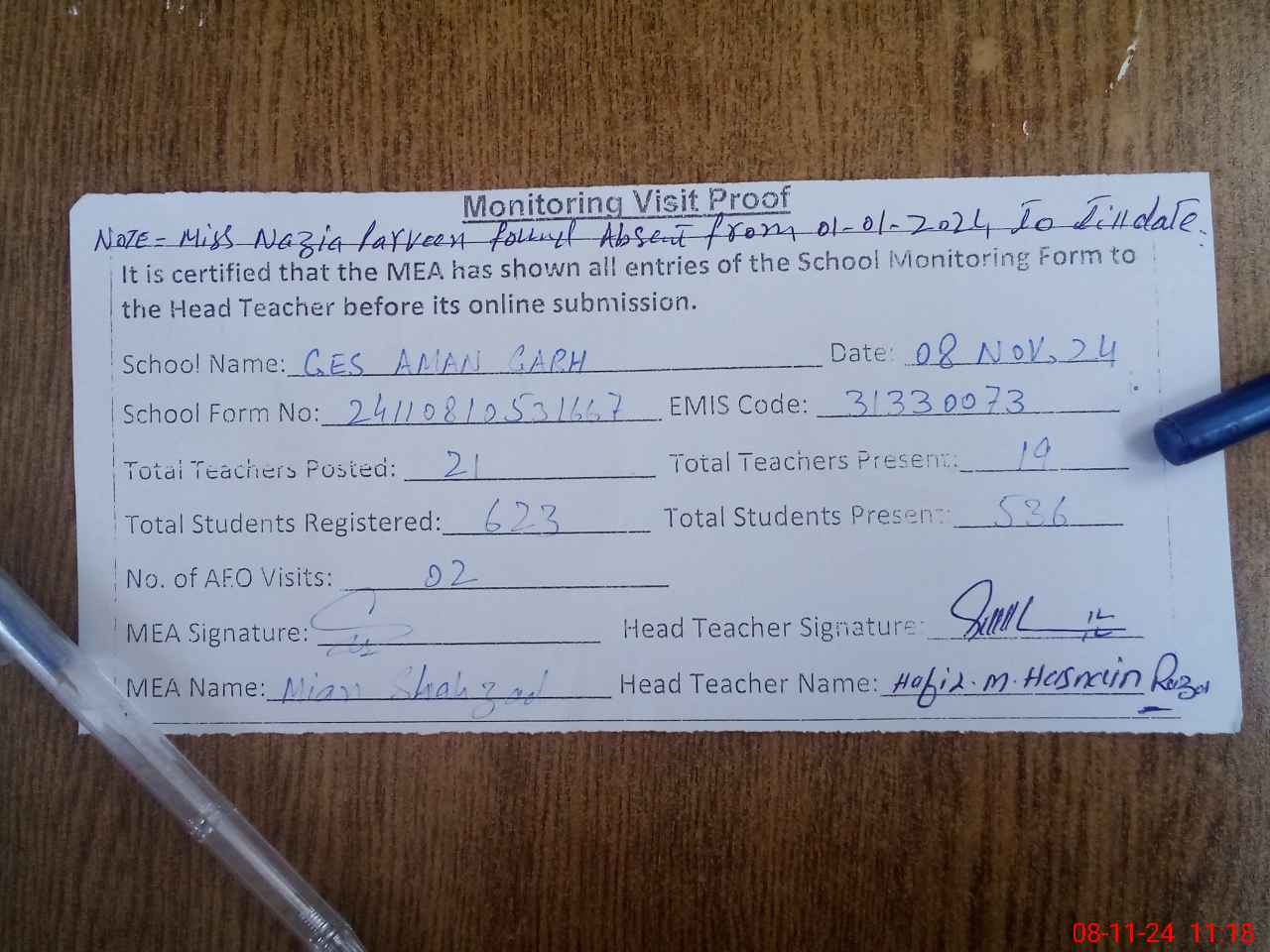 | EMIS Code: 31330073 | Name of School: GES AMAN GARH | |||