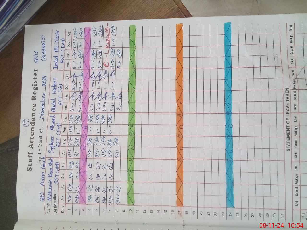 | Remarks (Use Separate Page if Required): Miss Nazia Parveen PST teacher found absent from 01 January 2024 to till date | |||||