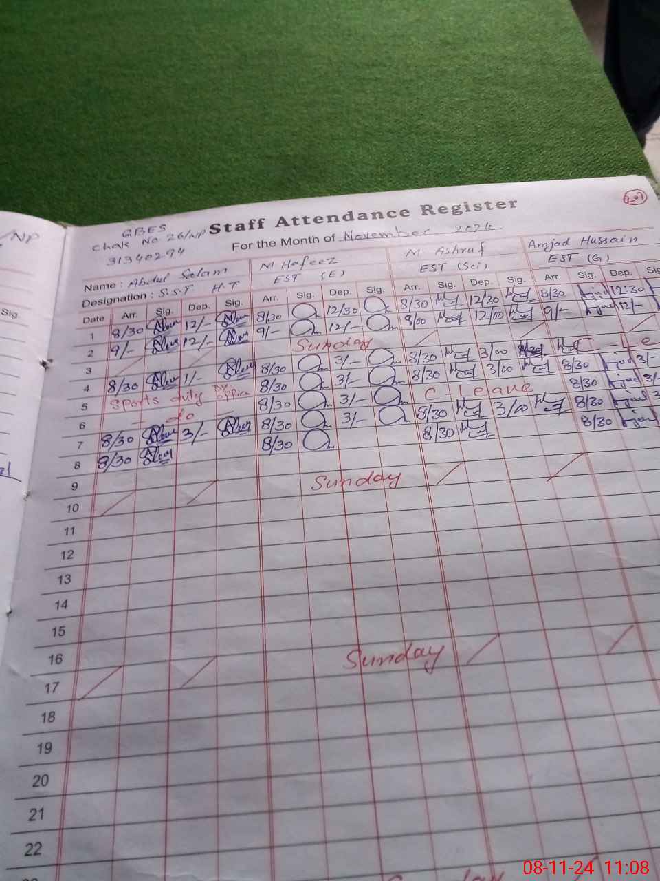 | Name: AB**** SA**** Designation: (School Headmaster's/Headmistress's) S.S.T.(SC) Phone/Cell Number: 03**** |