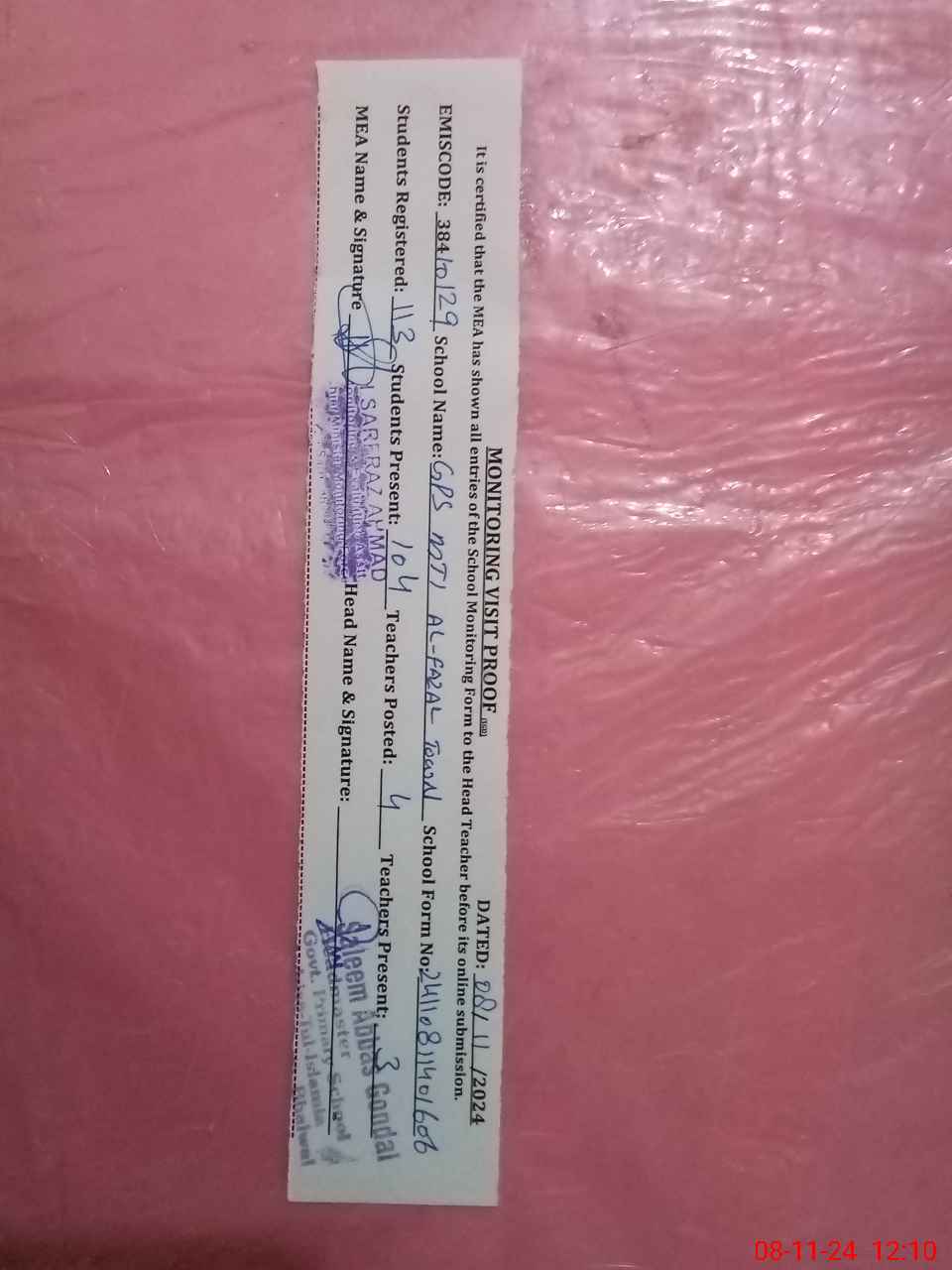 | EMIS Code: 38410129 | Name of School: GPS MADRISA TUL ISLAMIA AL-FAZAL TOWN BHALWAL | |||