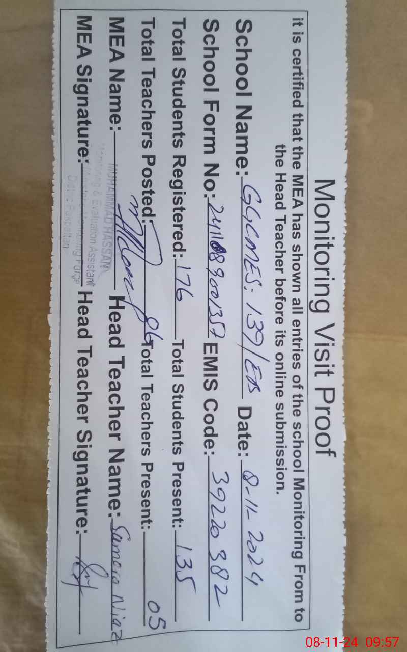 | EMIS Code: 39220382 | Name of School: GGCMES 139 EB ARIFWALA | |||
