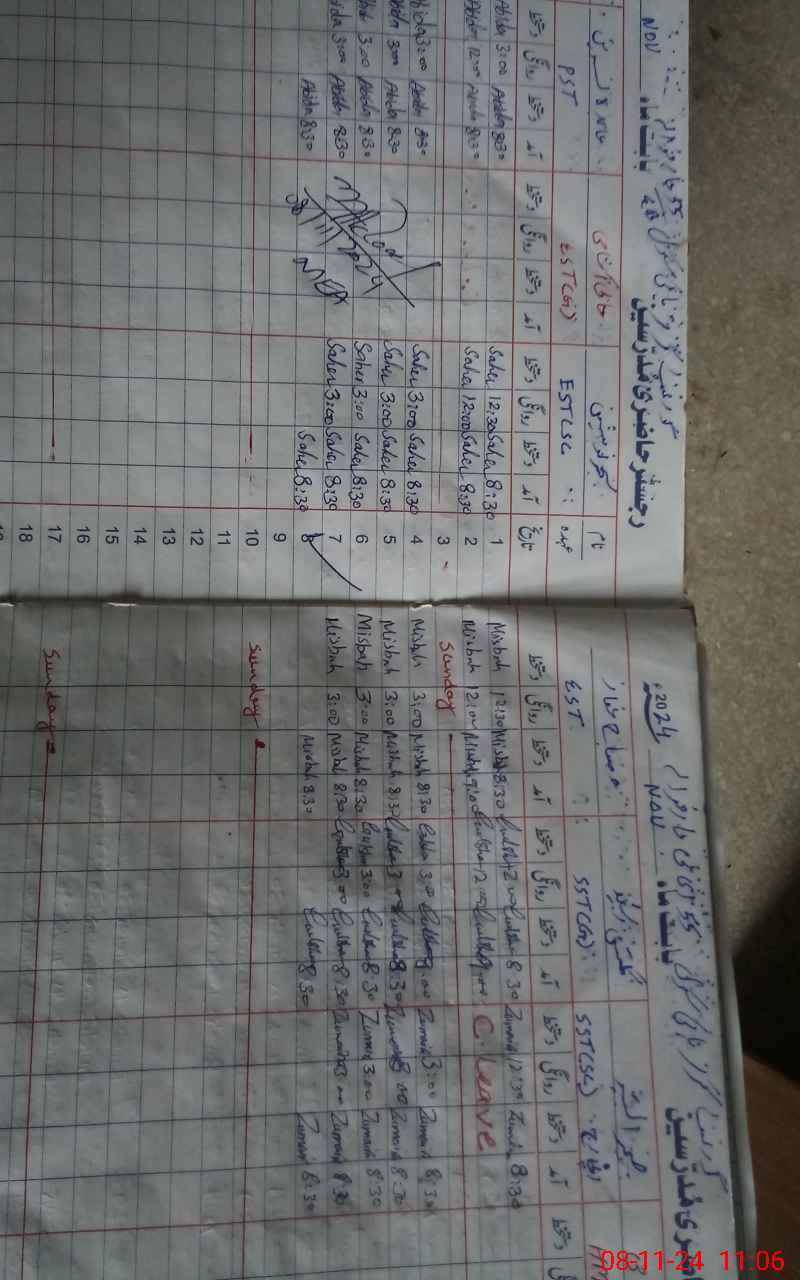 | CNIC | Full Name | Designation | R/C | Absence During Last Calender Month |
