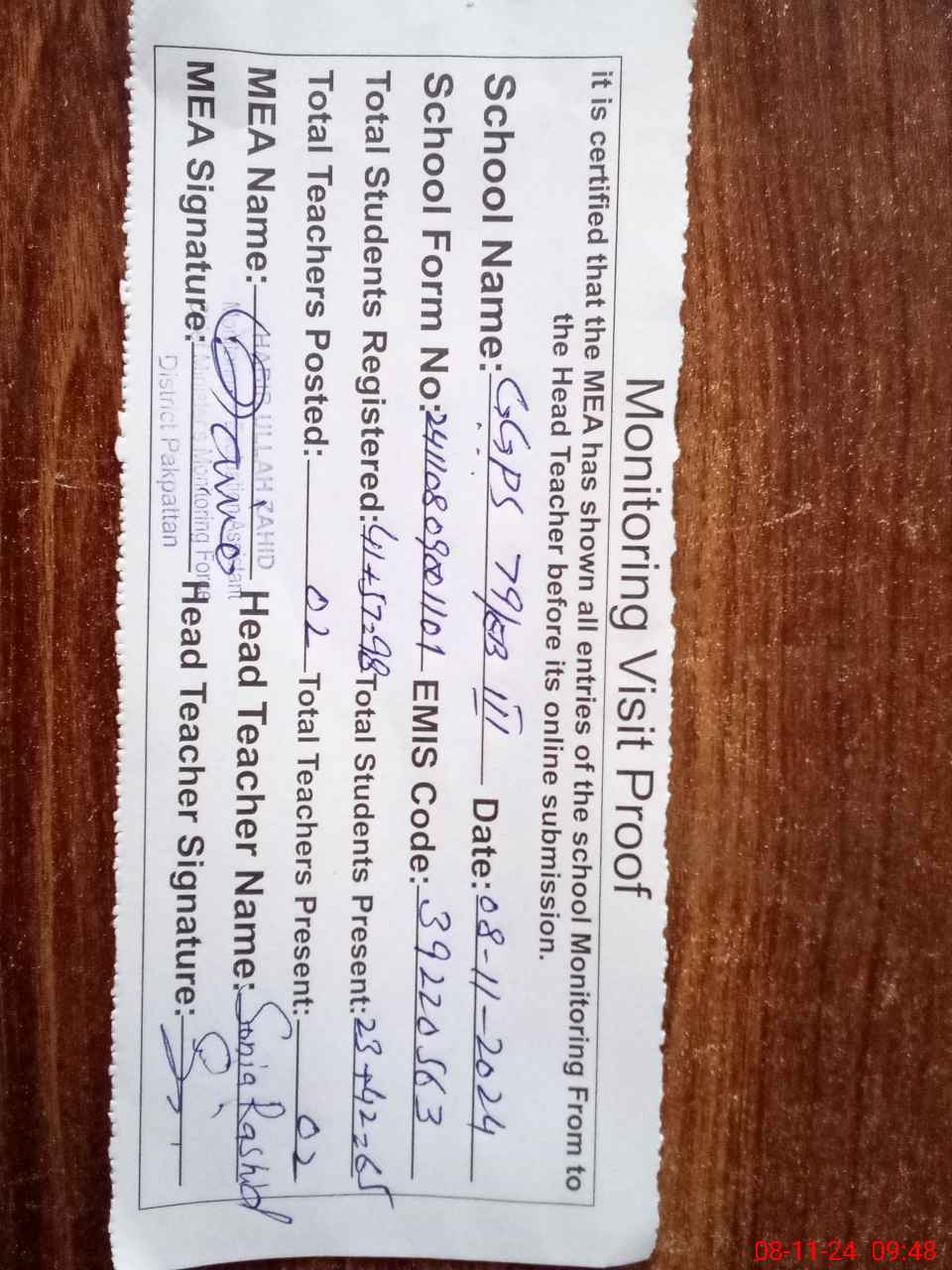 | EMIS Code: 39220563 | Name of School: GGPS 79/EB III basti jalal | |||
