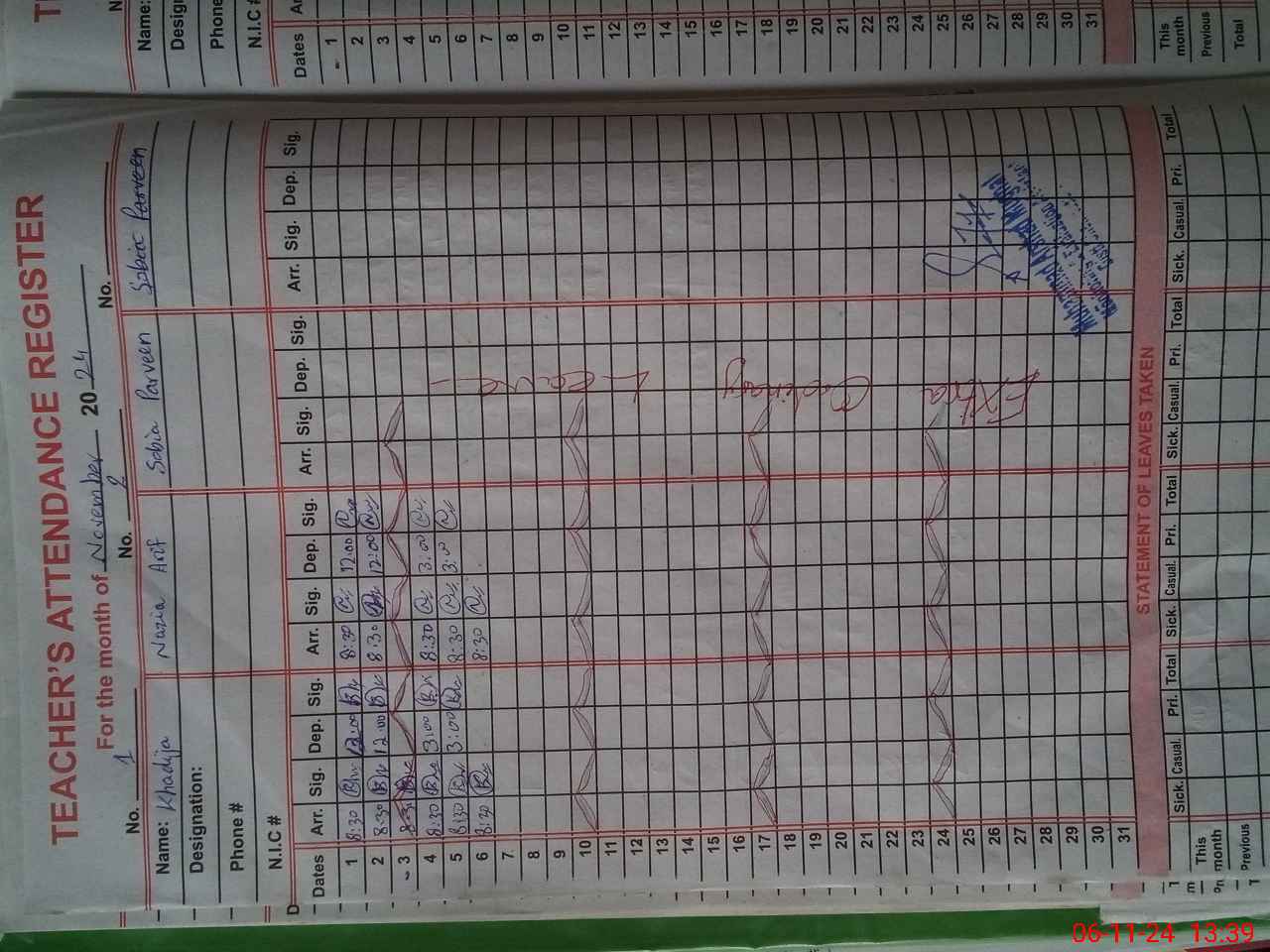 | Name: NA**** AR**** Designation: (School Headmaster's/Headmistress's) PST Phone/Cell Number: 03**** |