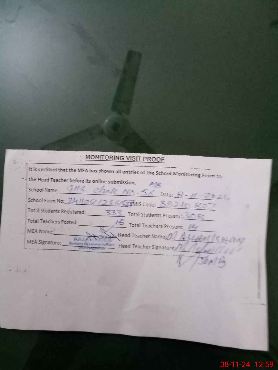 | EMIS Code: 38210807 | Name of School: GHS CHAK NO. 56 MB | |||
